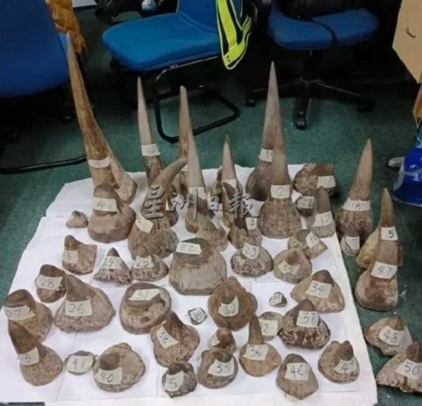 “兩名嫌疑人是因為涉嫌走私野生動物的犯罪行為,而在雪州雪邦國際機場清真寺交通圈處被逮捕。經過檢查後,马来西亚半岛野生动物及国家公园局搜出50件疑似犀牛角的野生動物角,估计价值約3000万令吉。”