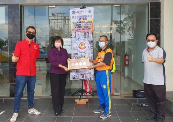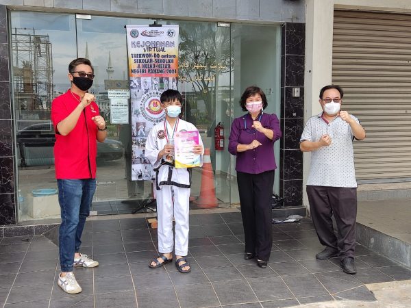 因应疫情,是项颁奖礼于日前在关丹福建会馆大厦楼下停车场简单举行,出席观礼嘉宾包括总务拿督王丽春、青年团副团长洪永杰及关丹环球跆拳道公会主席兼筹委会主席洪祺华等。