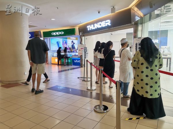 (关丹8日讯)彭亨今日正式踏入国家复苏计划(PPN)第四阶段,关丹各大购物广场一片车水马龙,间间店铺均现人龙排队。