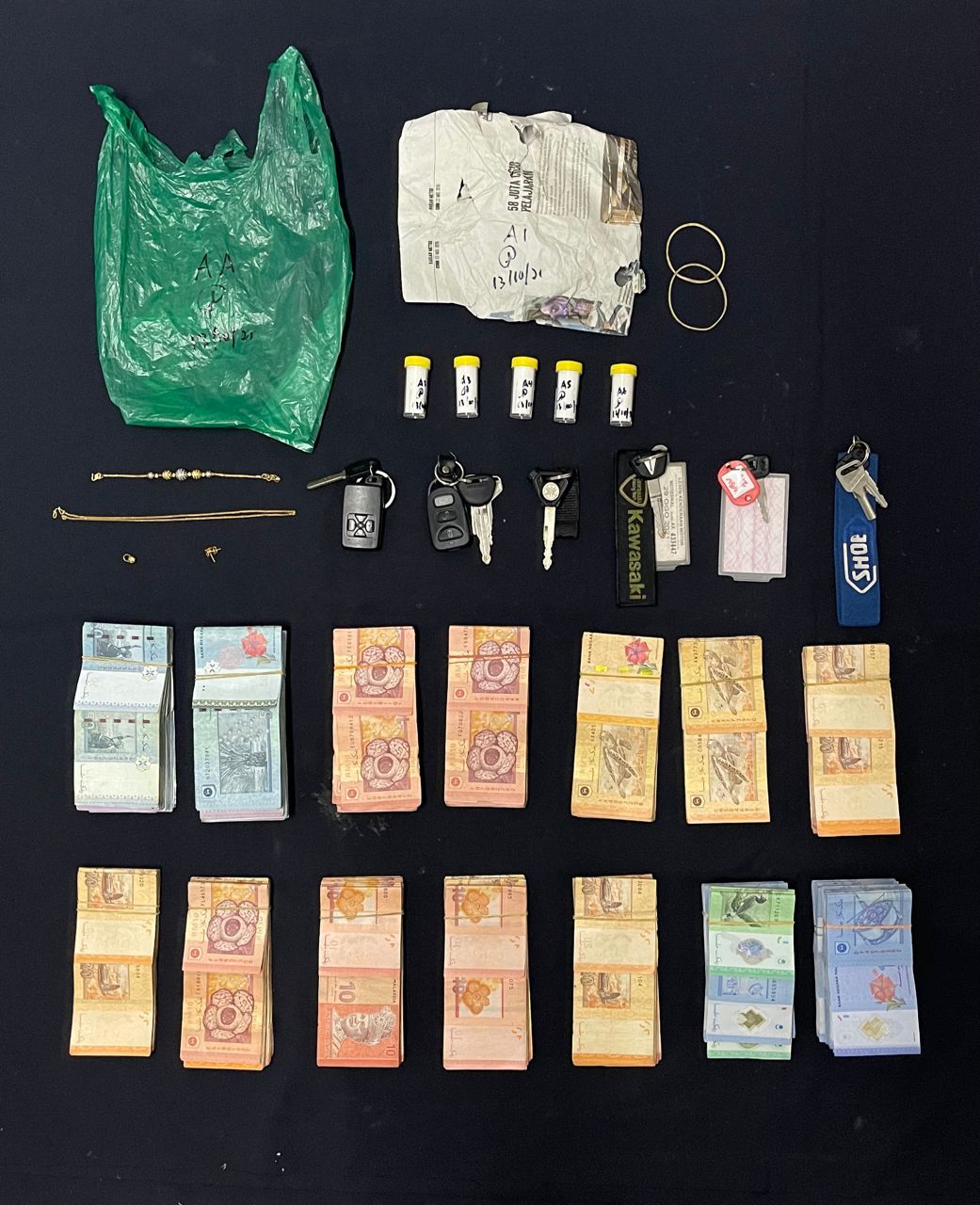 他指出,警方充公了1辆豪华轿车、1辆四轮驱动车、4辆摩托车、金饰及2万7400令吉的现金,被充公的财物总额为38万1900令吉。