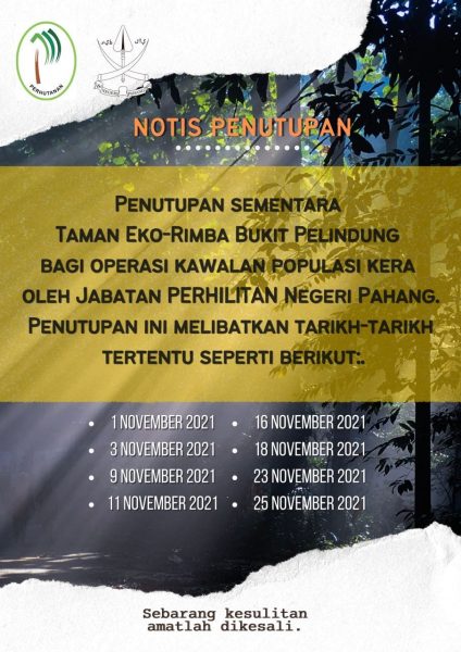 根据彭亨森林局的文告,相关地点将会于11月1日、3日、9日、11日、16日、18日、23日、25日关闭。