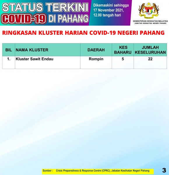 3宗死亡病例分别是2宗来自关丹县,1宗来自百乐县。