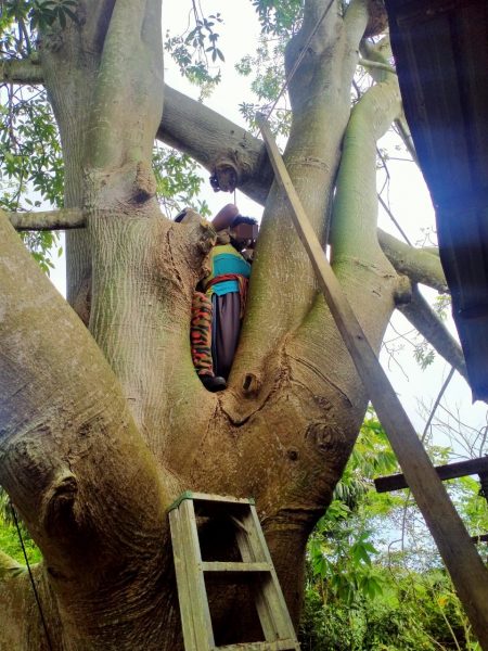 (淡马鲁24日讯)一名男子上树修砍树枝,不料腰部突然疼痛无法下来,消拯员受召到场“救人”。
