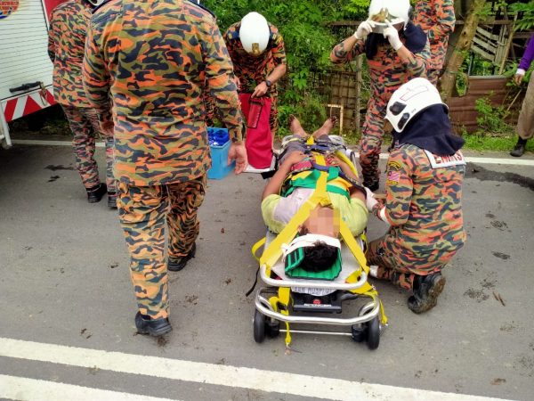 他说,消拯员抵达现场时发现一名男子卡在15呎高的树上,无法爬下来,经过消拯员一番努力后,顺利将该名男子救下来,并在场给予男子初步治疗。
