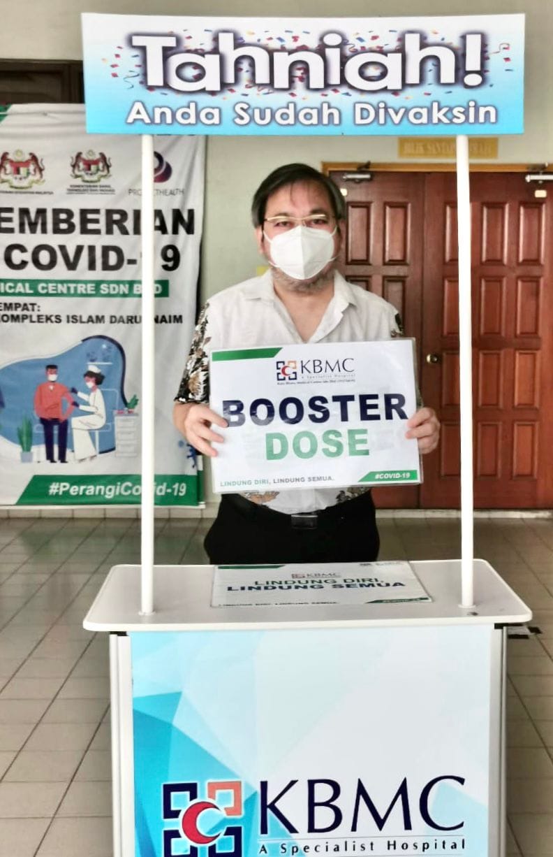 林金发是11月21日接到MySejahtera通知,以前往KBMC私立医院接种加强针。除了施打后出现一点头痛现象,基本情况良好。