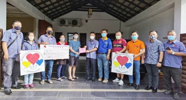 关丹慈善家今早在蔡永祥的率领下,与一群理事前往探访,并代表该组织移交2万令吉医药援助金予陈俊宇。