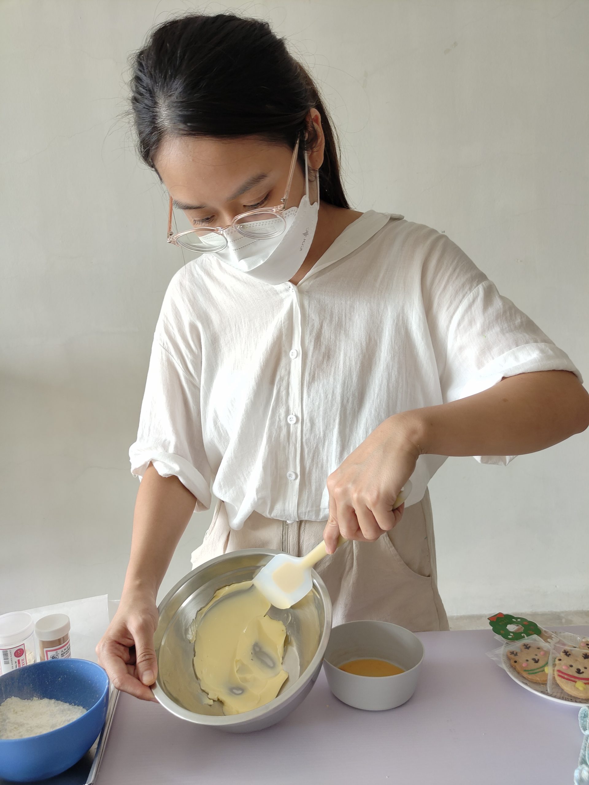 “这里要注意要用软化牛油,做出来的口感比较扎实,不容易碎掉,也不是很酥,适合一些造型饼干或做糖霜饼干底。