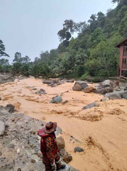 消拯局指出,原本入住生态度假村的游客因为担心度假屋被急流冲走,因此离开度假村并联络消拯局求救。