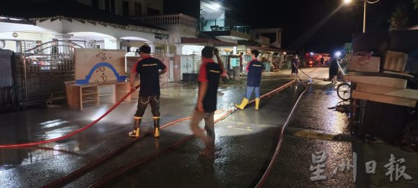 (直凉23日讯)灾后清洗泥浆是最头疼的难题,金马扬志愿消防队出动平时用来灭火的大水喉,通过重压喷射,协助直凉灾区清洗马路上厚厚的泥浆。