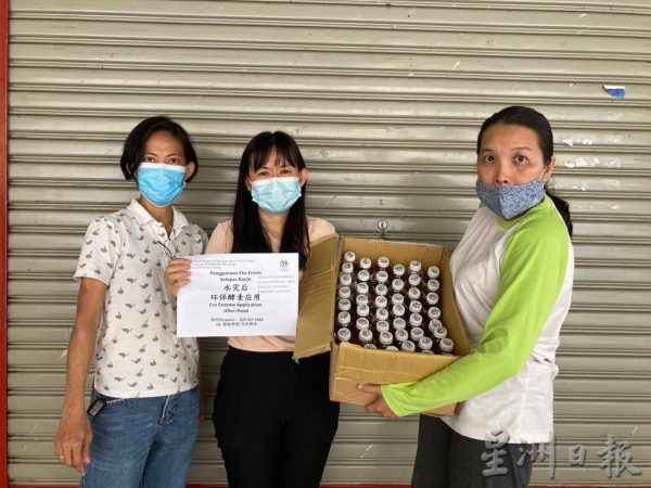 负责调配酵素和消炎的热心人士分别是黄彩群老师、李有泉、陈玉珠、黄带娣、陈亚花、谭玉凤及刘清清老师,众人近日分批把赠品送至服务中心。