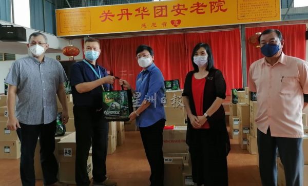 关丹华团联合Hardex移交防疫用品予关丹12华小2中学。