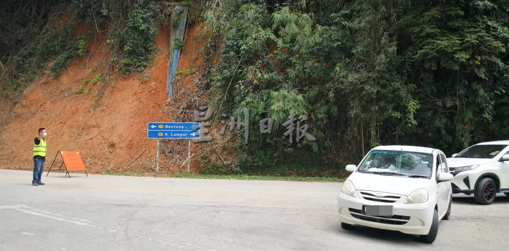 本报记者在现场所见,负责东铁云顶隧道工程项目的中国交建公司派出一位员工在文冬吉隆坡旧路驻守,以通知驾驶者们,该路段严重崩塌,车辆不能通行。