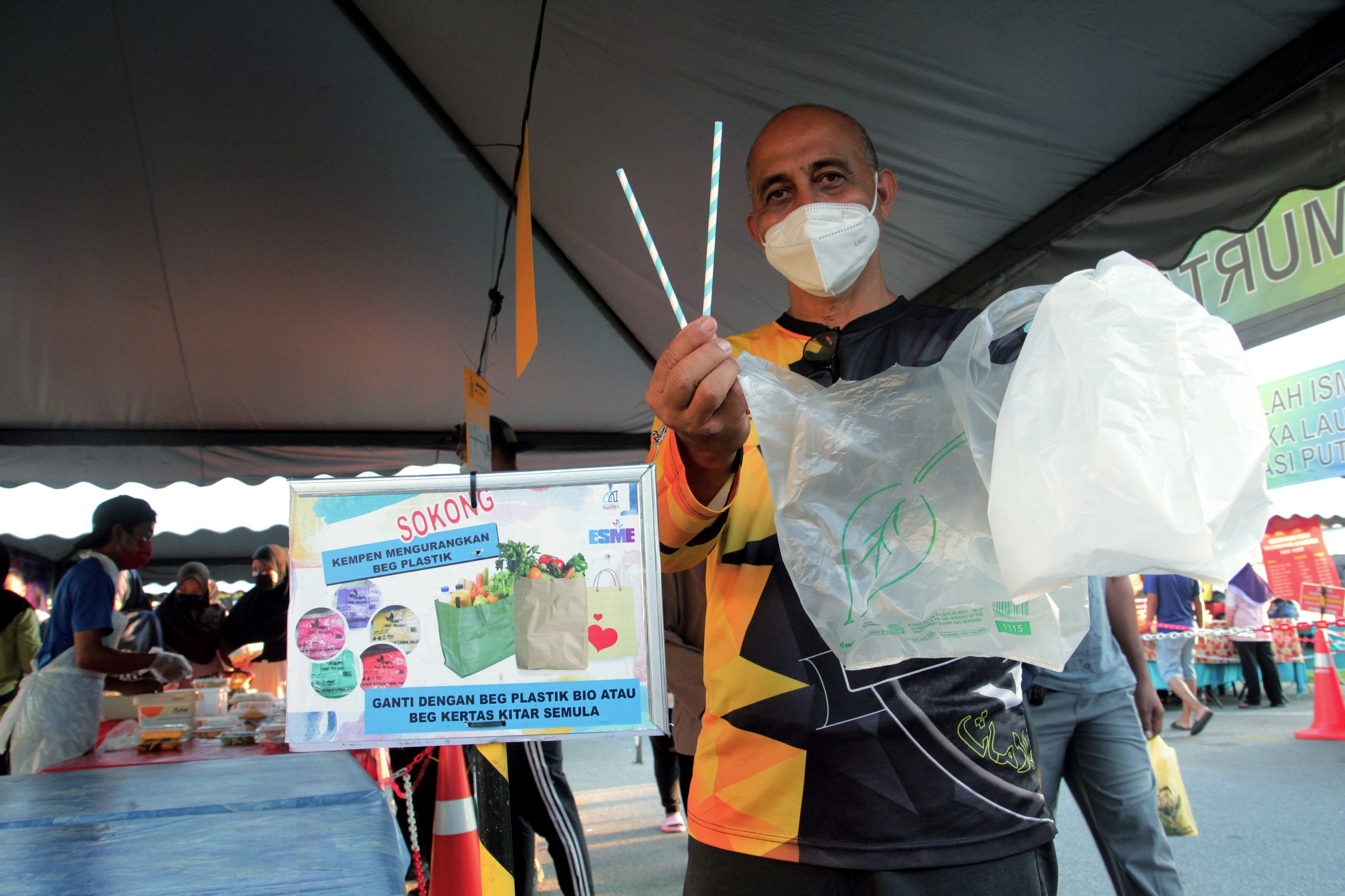 丹绒隆坡斋戒月市集 用纸吸管可分解塑袋
