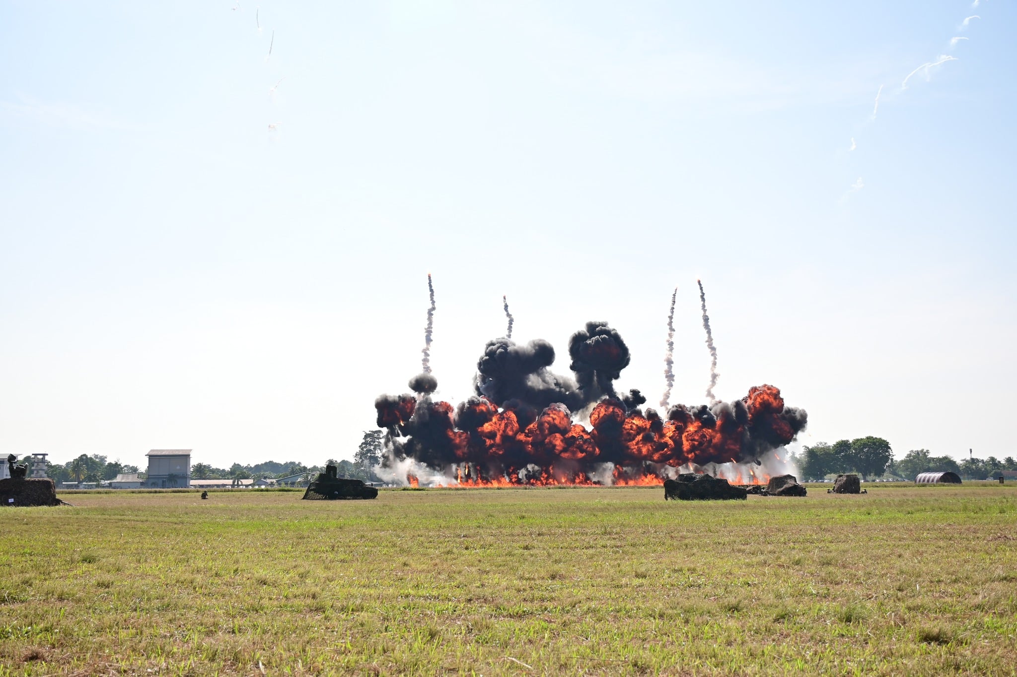 三军也出动战斗机、直升机等设备参与演习彩排,并且通过各种爆炸及枪林雨弹呈献逼真场景,场面壮观震撼了不少在场者。