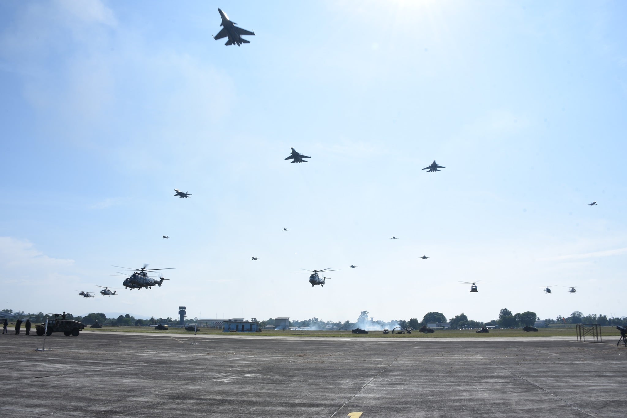 关丹海陆空三军为了在第89届ATM日进行作战演习,于本月21日开始,进行作战演习彩排,因此民众可以在关丹空中看到低空飞过的战机、直升机等。