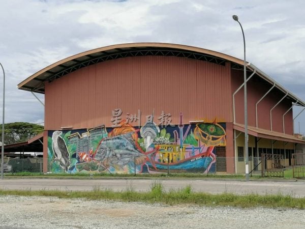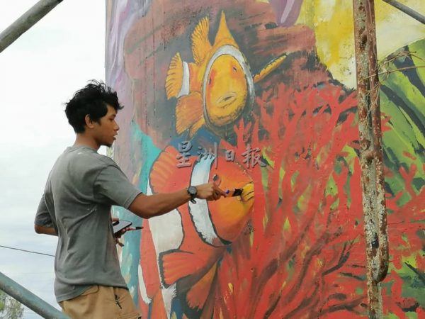 耗时两周完成,柏拉姆水槽“幽浮”成关丹最大壁画作品。