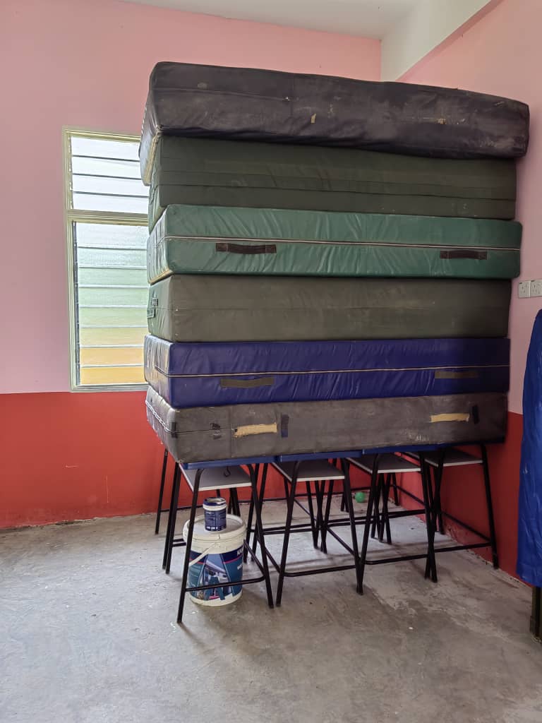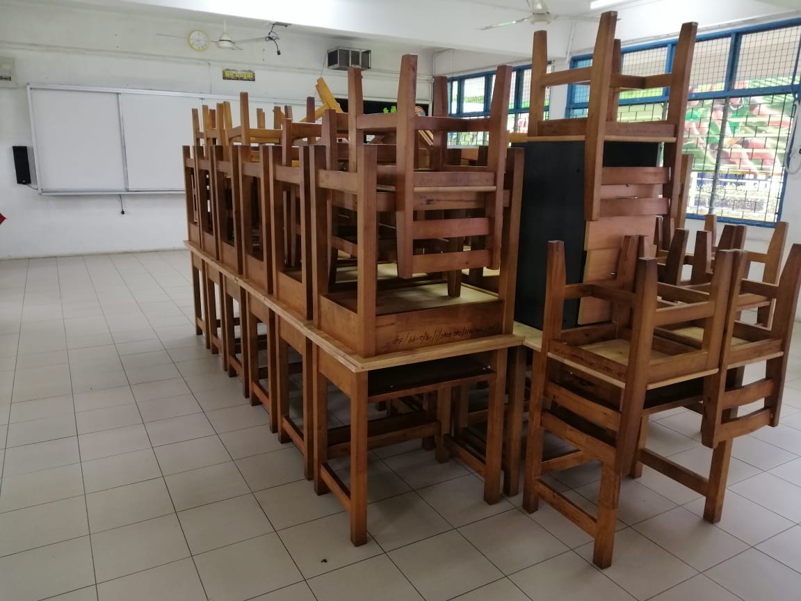 校长邓世坚说,他们在上个星期五放学后,即展开防范水灾的措施,任何属于高几率淹水的课室都被清空,书本、教具、贵重物品及器材等,都已经叠高了。