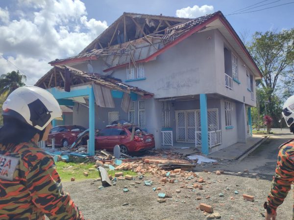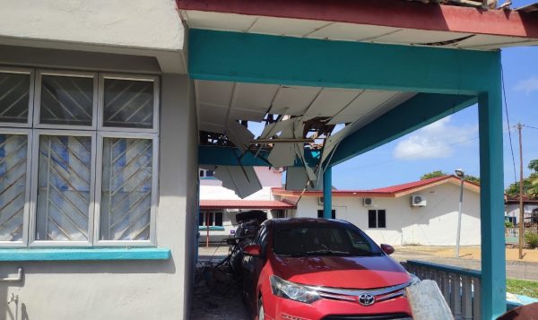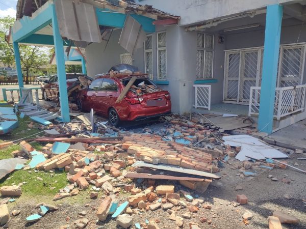 (北根16日讯)北根县卫生局人员的宿舍屋顶坍塌,压坏两辆停靠在下方的轿车。