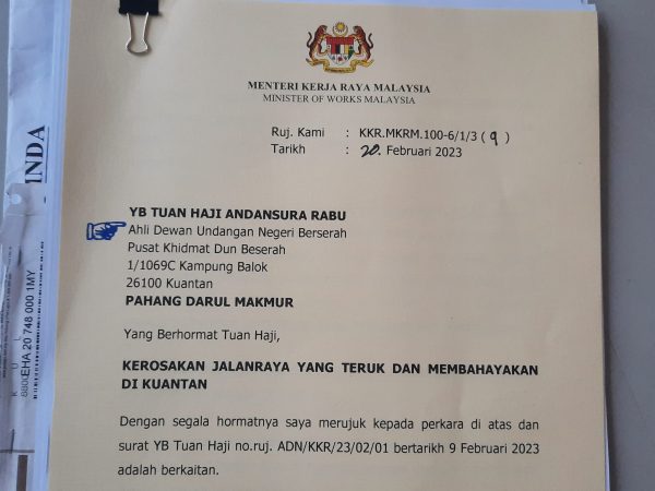 米昔拉区州议员安丹苏拉披露,紧需维修的道路包括雅姆往日隆雅路口 、巴洛交通灯路口、士满慕交通灯路口、武吉冷宜交通灯路口、关丹码头交通灯路口、关丹往甘马挽路(靠近米昔拉巴刹路口)。