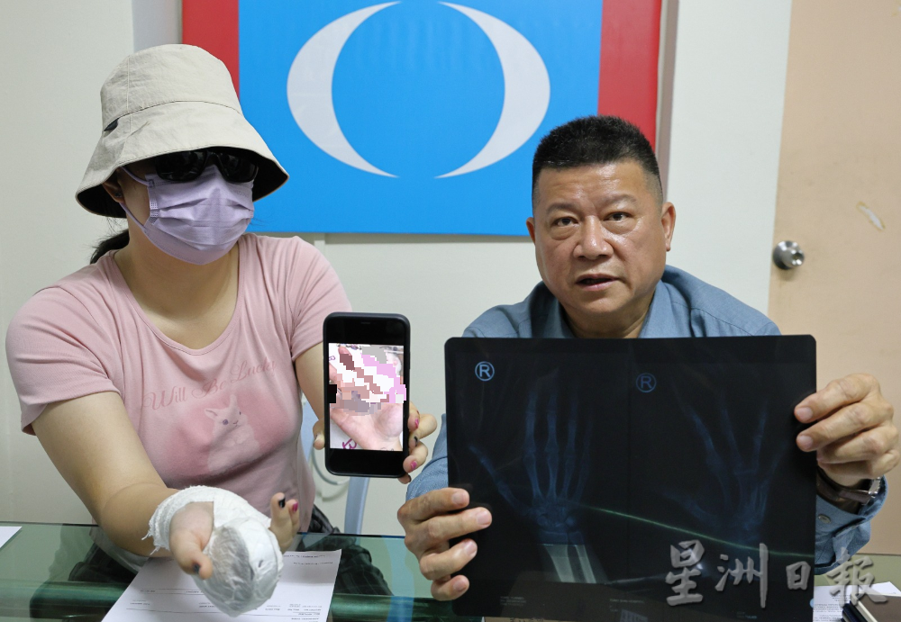“为了保护头部和脸,我只能以手臂掩护,结果右手两根手指骨裂,额头和两边手臂都淤青。我的友人也被攻击,虽然伤势没我严重,但是手臂也是一片淤青。