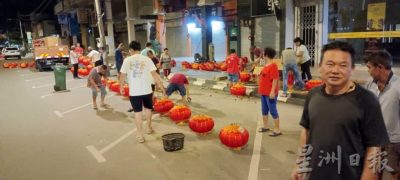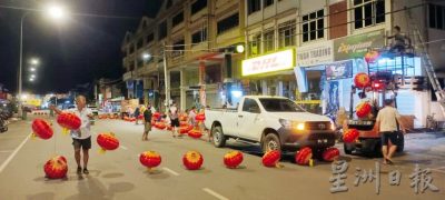筹委会主席颜清耀说,感谢工委和义工们在这两天协助更换灯笼,在大家的通力合作下,短短两天就完工了,我们之后移师到直凉大街更换灯笼。