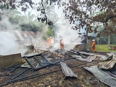 开斋节前火灾家园毁了 百乐警区和县议会向灾民送暖