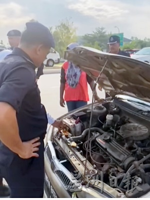 不久前,百乐警区配合开斋节展开安全行动时,一位巫裔妇女的轿车抛锚了,停在路边,百乐警区主任祖基菲里警监和一些参与行动的警员们连忙趋前帮忙。