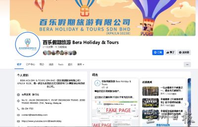“我们原本并不知情,直到最近有顾客询问某某游团详情而该团又不是我们办的,才揭发原来有人盗用我们的名义开设专页,而那名顾客有追随真假专页,刚好通过真专页的收件箱询问情况,才知道骗子在假专页发出招徕游团的广告。”