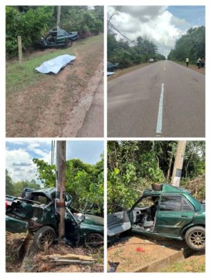 (北根26日讯)33岁国油辅警驾驶的轿车失控,撞向路旁电柱,意外导致车毁人亡。