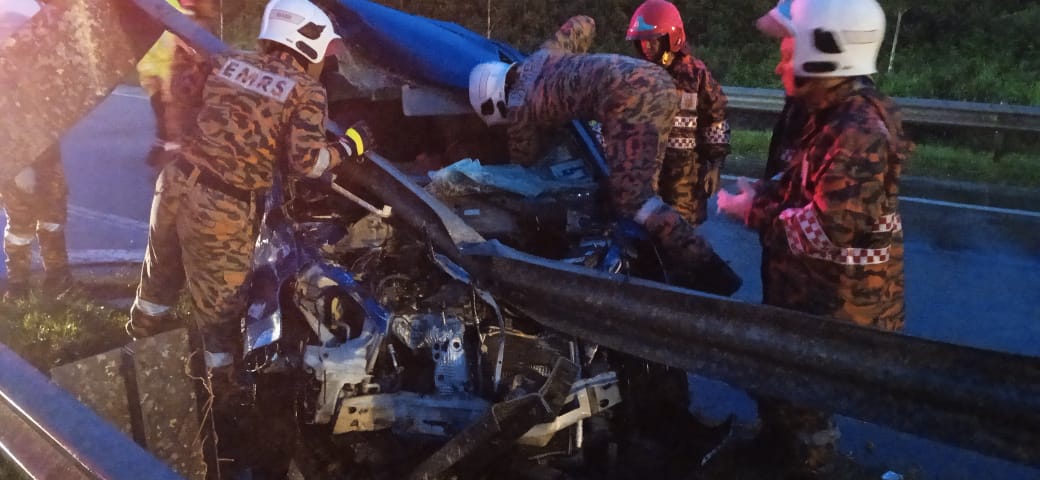 他说,消拯队抵达现场,发现车祸涉及一辆轿车,该辆轿车失控猛撞分界堤,司机被夹在车内。