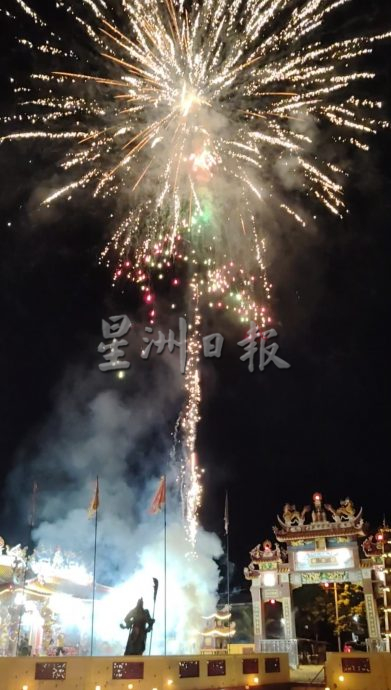 烟花是在关帝庙广场燃放,历时约半句钟,让村民惊呼不已,其中690发烟花是由荣利与陈炳棕油贸易赞助。