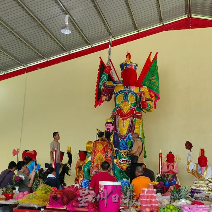 23日讯)经过多时的筹备,而连突中元普渡会白石大士爷金身暨10尊神明雕像今天隆重开光仪式,当地善信踊跃出席见证历史性重要时刻。 这座白石大士爷金身雕像高达21尺,为全马最高的大士爷雕像。另外10尊神明雕像为太乙救苦天尊、金童、玉女、大伯爷、二伯爷、牛神将军、马神将军、土地公、城隍爷和灶君。
