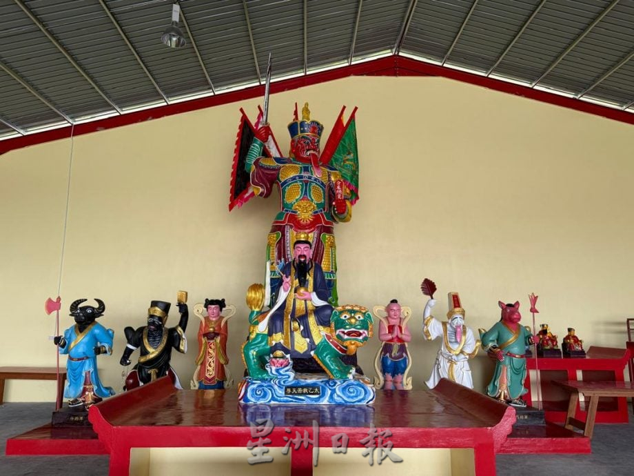 而连突中元普渡会21尺高白石大士爷金身和10尊神明雕像,开放给大众膜拜祈福。(郑佩琴摄)
