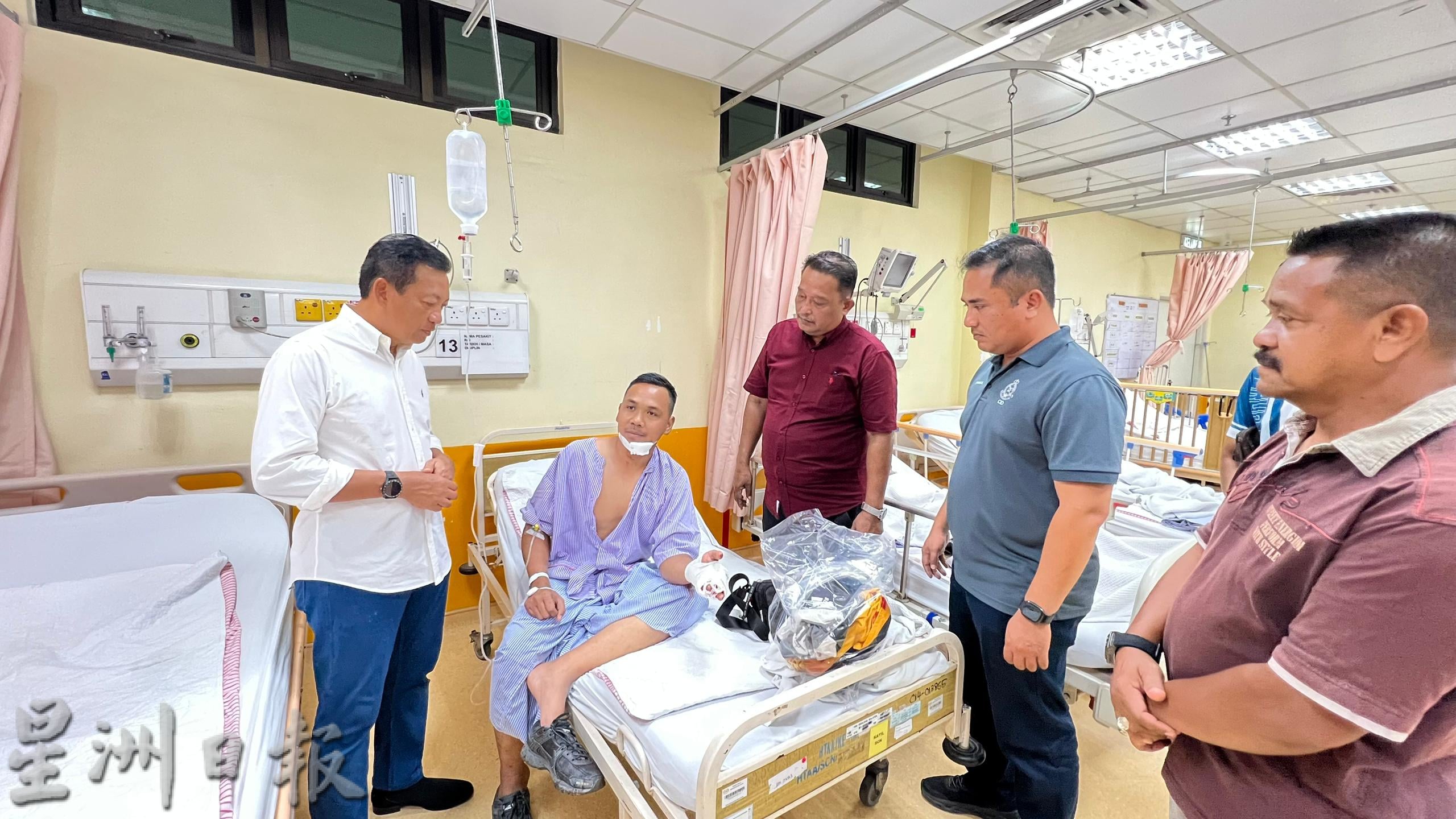 他表示,在警方尝试安抚嫌犯时,其中一名37岁的伍长莫哈末沙菲里遭到嫌犯攻击,背部、下巴及左手手指严重受伤。