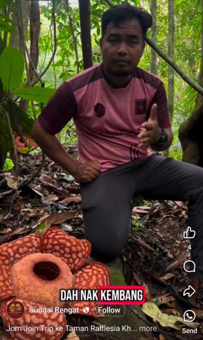 其中一名来自吉隆坡的游客李德安(译名)表示,他在社交媒体上看到关于当地莱佛士花盛开的影片后,对乌鲁仄卡热带雨林深感兴趣,便亲自到来探索欣赏莱佛士花壮丽的大自然景象。