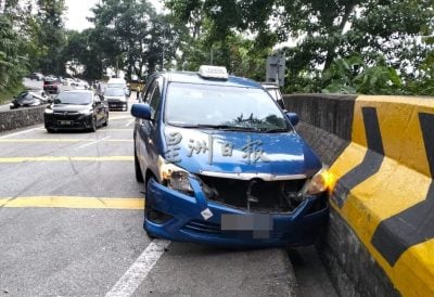 这宗意外发生在今日下午5时许, 据现场围观的民众表示,旅途巴士下山时疑刹车器失灵,失控撞及轿车和德士,也导致轿车严重毁坏,车上两人受伤。无论如何, 进一步情况还有得证实。