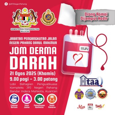 (关丹20日讯)彭亨州陆路交通局将于21日(周四),在英迪拉马哥打总部举办一项捐血运动,现场还设幸运抽奖、健康筛检等各种活动,呼吁民众踊跃响应。