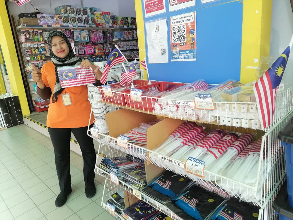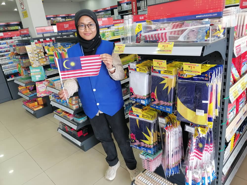 关丹SMO书店马哥打路分行助理经理莎依达受询时指出,他们于7月初就开始在书店里出售大马国旗及彭亨州旗,其中以手握式“辉煌条纹”最热卖,店里存货如今已近售罄,这个星期再获得总行的补货。而标准尺寸的国旗同样热卖,店员们每个星期四都会为货架进行补货。
