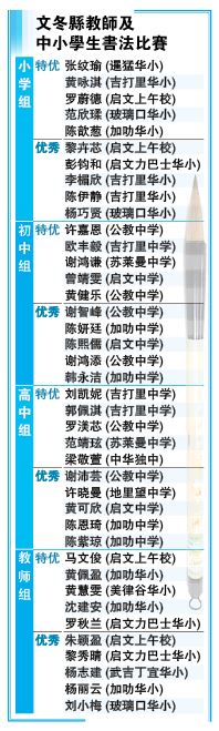 东:(已签发)文冬县教师及中小学生书法比赛