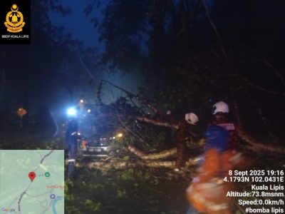 另外,彭亨消拯局公关祖法迪通过媒体群组指出,立卑消拯局接获消息后出动9名人员到国小附近的事发地点协助,以电锯清理倒树并救出两名受困者。