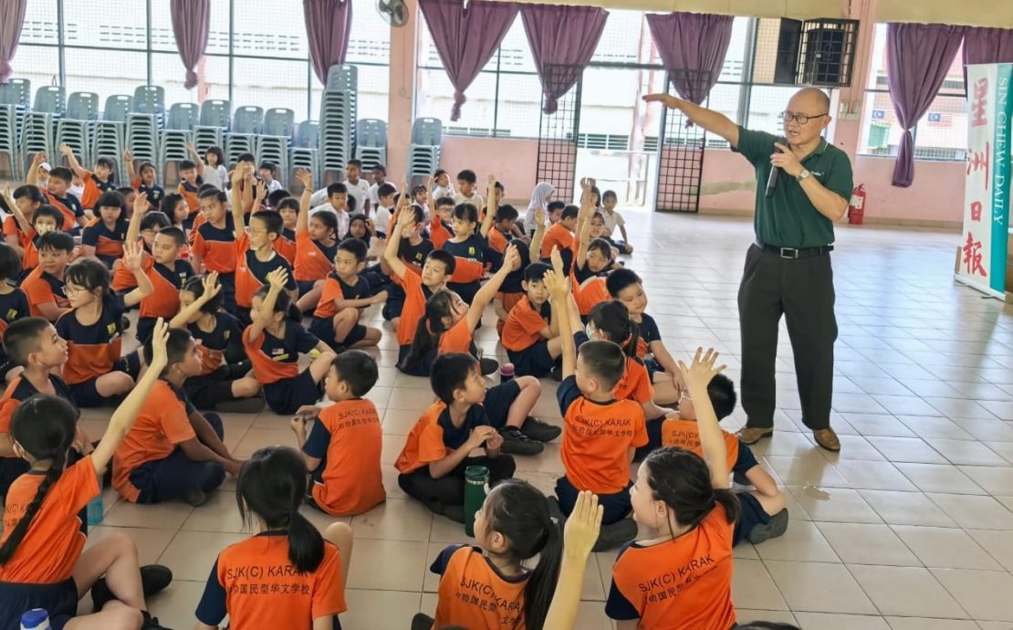加叻华小校长锺雯莉致词时表示,很感谢星洲日报把 2025年学生阅报计划有奖填字游戏颁奖礼及走入校园活动带到该校举行,学生们也非常开心。