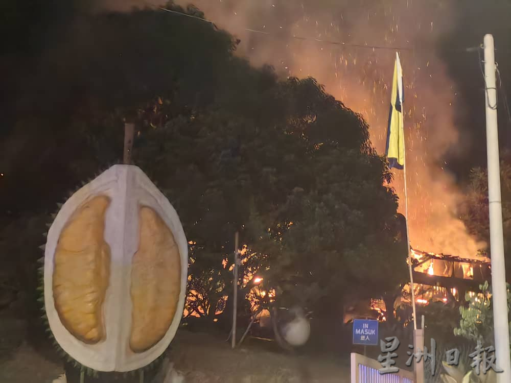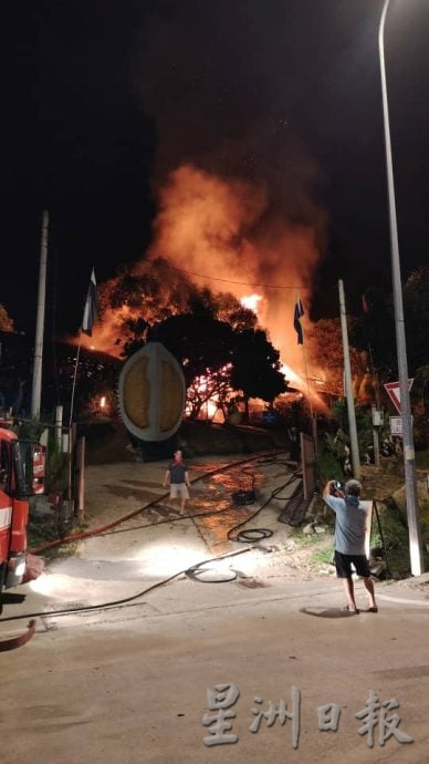 (文冬13日讯)加叻大道靠近文冬双溪都亚的 Rimba by d King餐馆今晚10许发生大火,消拯人员还在灌救中。