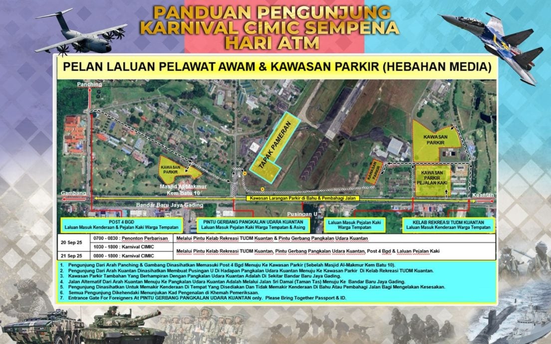 (关丹17日讯)为了确保第92届国防卫队日庆典顺利举行和游客安全,大马皇家空军(TUDM)发出参观指南,呼吁公众遵守相关规定,其中包括禁止携带危险物品及无人机等入场。