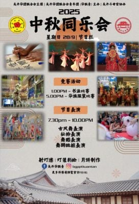 | 下午3时: | 射灯谜、灯笼彩绘、月饼制作等互动活动开放 |