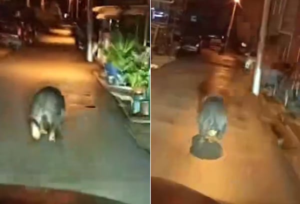 视频|彭亨加叻新村疑出现黑熊 黑夜街上惊慌狂奔