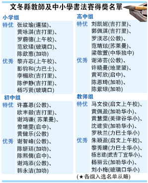 东:( 已签发)文冬县教师及中小学生书法赛颁奖典礼