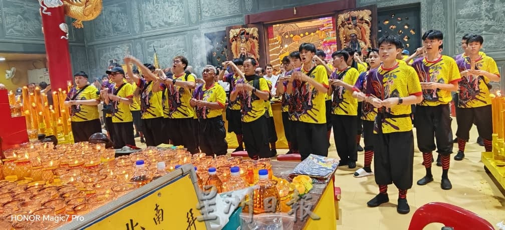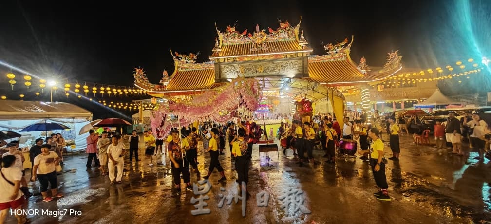 (关丹22日讯)关丹斗母宫庆祝九皇大帝千秋宝诞首日,尽管下起大雨,仍不减信众的虔诚与热情。许多民众冒雨前来上香祈福,并留守至雨停后,观赏难得一见的舞龙舞狮表演,场面热闹。