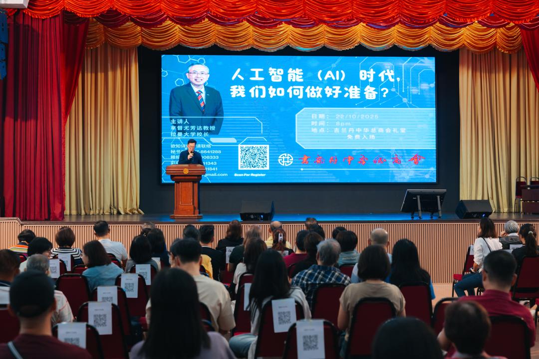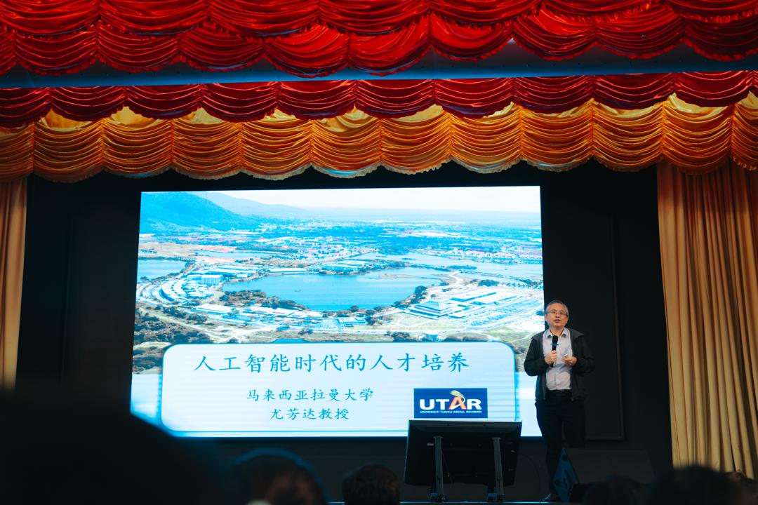 丹中总举办“人工智能时代,我们如何做好准备?”主题讲座,邀请到拉曼大学校长拿督尤芳达教授主讲。(大会提供)