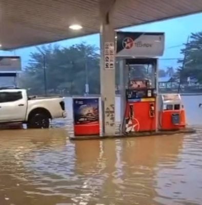 (瓜拉吉赖24日讯)瓜拉吉赖的古吉路段傍晚5时许发生闪电水灾,2家地势较低的油站顿时被泡在水里。