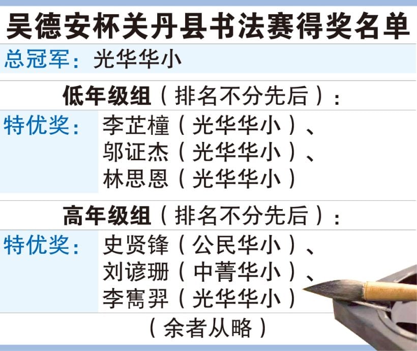 2025年度第4届拿督吴德安杯关丹县书法赛,共分为低年级组及高年级组,低年级组共获得42名华裔及5名非华裔学生参与,高年级组获得42名华裔及4名非华裔学生参与。